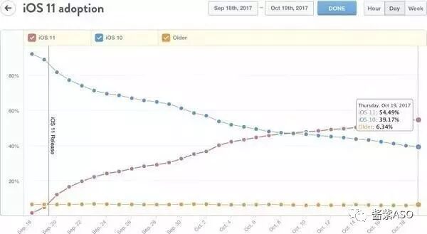 首先我们回顾一些2017年推送iOS11时,用户的系统更新情况。